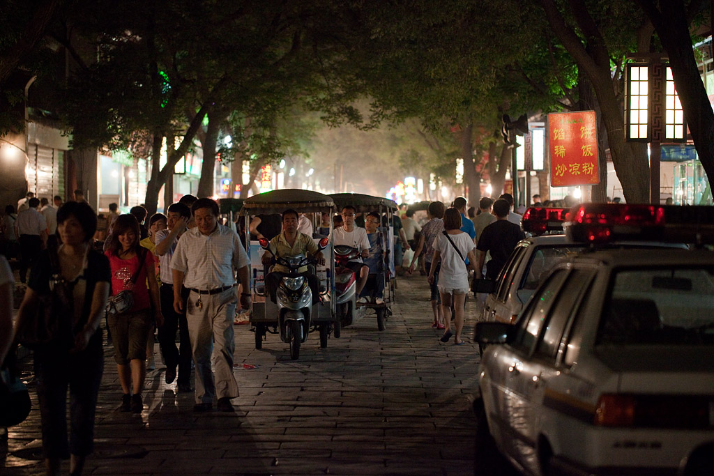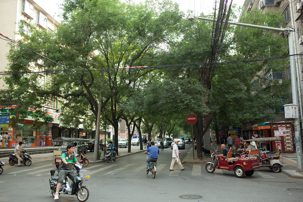 Xi’an ist schon eine eher angenehme Stadt. Einigermaßen sauber und nicht so fürchterlich in Einkaufszone und Slum aufgeteilt, es mischt sich alles relativ dicht. Und es ist nicht alles mit Beton platt gemacht sondern auch hier mischt es sich und überall findet man 2stöckige Altbau-Straßenzüge. Manche Ecken sehen bis auf die Straßenschilder so aus als wäre man in Paris.