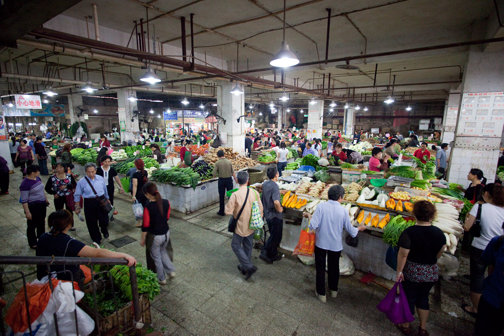 Erst abseits vom Zentralbereich gab es einen üblichen Markt für Gemüse und Kleintiere.