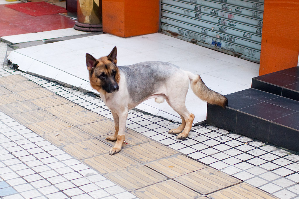 Am Ausgang des Parks war noch ein kleiner Haustiermarkt, und es scheint hier gerade Mode zu sein, Hunde bis auf den Kopf, den Schwanz und die Füße zu rasieren. Okay, bei Pudeln sieht man das auch schon mal in Deutschland. Bei einem Schäferhund sieht es aber definitiv unmöglich aus.