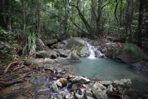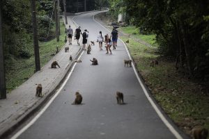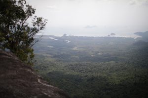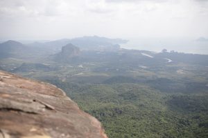 Das Erlebnis mit den Affen machte den mühsamen Aufstieg schnell vergessen. Außerdem gab es noch einen Aussichtspunkt über Phuket, der aber wegen des etwas diesigen Wetters nicht unbedingt so spektakulär war. Auffällig waren von Oben aber die extrem vielen Sportplätze. Auch der Trimm-Dich-Pfad war bei unserem Abstieg inzwischen sehr gut von den Einheimischen frequentiert. Falls es nicht für alle Thailänder gilt – die in Phuket sind offenbar sportbegeistert.