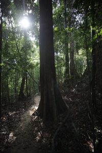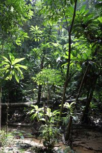 Der lange Aufstieg ließ viel Zeit, sich auf die Begegnung mit den Affen vozubereiten. Wir hatten eine Menge Respekt vor den Affen und wollten auf keinen Fall gekratzt oder gar gebissen werden. Eine Maßnahme von Vanessa war es, die Bananen blickdicht zu verpacken.