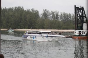 Ähnlich wie schon die Hinreise war auch die Rückreise als Urlaubstag geplant. Dazu haben wir um 9:15 Uhr am morgen in unserem Hotel am „Tab Kaek Beach“ ausgecheckt und wurden dann im Hotel abgeholt und zu unserem „Speedboot“ gebracht, das uns in etwa 1:15 Stunden über das Meer von Ao Nang nach Phuket gebracht hat.
