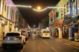 (Blick in die Taolang-Straße im Zentrum von Phuket-Town. Vanessa konnte hier noch erfolgreich etliche Mitbringsel erstehen.)